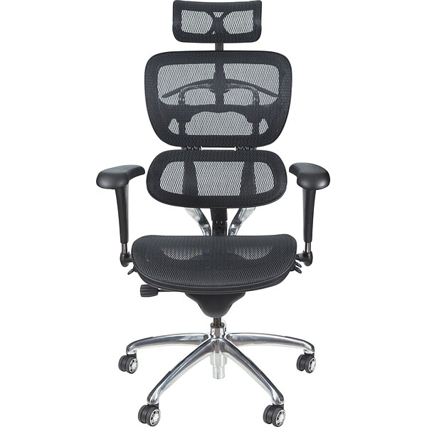 Combining an impressive array of ergonomic features with a modern and elegant design, the Balt Butterfly ergonomic executive office chair gives you total control over your seating experience at an unbeatable price point. It is engineered to support the body in all-day comfort and provide an ergonomic fit for a wide spectrum of body types. The Balt executive office chair's stylish and breathable split-panel mesh back includes angle adjustment, tilt-lock in three positions and tilt tension control. It i s contoured to provide optimum and natural lumbar support. The chair can easily adjust the breathable mesh seat depth with the seat glide control. The curved headrest pivots to give correct neck support whether upright or reclining. This ergonomic office e chair's arm rests pivot and are height adjustable (3") to work with a variety of work spaces, positions, and activities. The back also features a convenient built-in coat or jacket hanger. The Balt office chair includes a durable 5-star base with dual -wheel casters for smooth mobility. The optional tablet arm accessory adds more functionality. The push button adjustment of arm joints locks in your desired positioning.