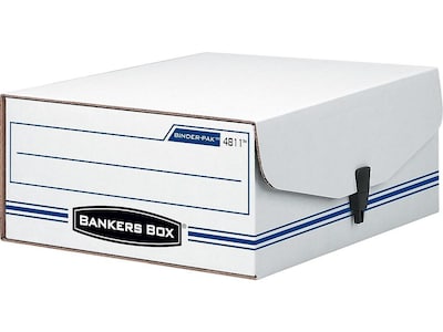 Bankers Box Liberty Binder-Pak Corrugated File Storage Box, Snap Closure, Check & Voucher Size, White/Blue (48110)