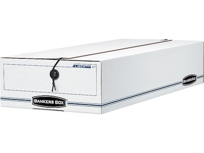 Bankers Box Liberty Corrugated File Storage Boxes, String & Button Closure, Check & Form Size, White/Blue, 12/Carton (00005)