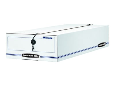 Bankers Box Liberty Corrugated File Storage Boxes, String & Button Closure, Check & Form Size, White/Blue, 12/Carton (00007)