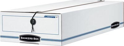 Bankers Box Liberty Corrugated File Storage Boxes, String & Button Closure, Check & Form Size, White/Blue, 12/Ct (00006)