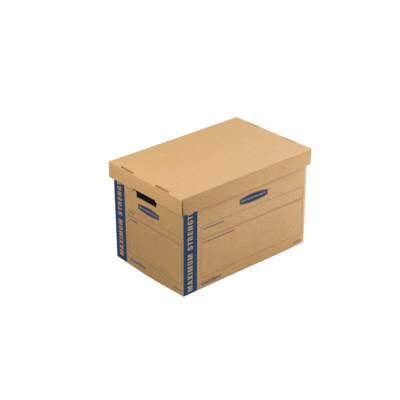 Maximum strength design provides added durability for heavier household items. Deep locking lift–off lid maintains secure closure and triple end, double side and double bottom construction provides durable protection. Reinforced, tear-resistant handles for comfortable carrying. Labeling area on box designates contents inside to keep your move organized.