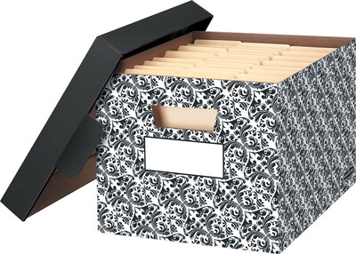 Bankers Box Stor/File Medium Duty 60% Recycled FastFold Corrugated File Box with Lid, Letter/Legal Size, Black/White, 4/Carton
