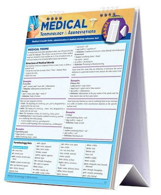 - Set Includes: 1- Medical Terminology & Abbreviation Easel Flip guide and 1-Anatomy Terminology laminated reference guide