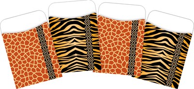 Barker Creek's Africa Library Pocket Set is versatile and fun! Library Pockets are great for organizing flash cards, hall passes, file folder game pieces, spelling word lists, library cards, reading logs, and more! This set includes 120 pockets - sixty each of two colorful designs. Each pocket is 3 1/2" x 5 1/8" and will hold standard 3" x 5" index cards. Please note you will need to use your own double-sided tape or glue if you want to adhere these pockets to another surface. We are not advertising these library pockets as "peel and stick" as the adhesive strips on the backs are no longer sticky.