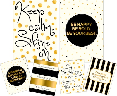 Barker Creek's Be Happy Be Bold Motivational Art Prints & Posters Set includes four art prints and two posters. These will create a positive environment for learning that can help inspire students to push past their boundaries. The designs feature beautiful on trend designs with various motivational quotes. Barker Creek's on trend posters and art prints are perfect for the classroom, workplace or home! Coordinating Products available: Search Barker Creek Gold.