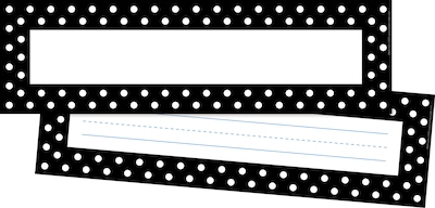 Barker Creek’s double-sided Black & White Dots Name Plates/Bulletin Board Signs are incredibly versatile! There are 36 name plates that measure 12" long x 3.5" wide. Use the side with rules when making name plates for student desks and lockers, creating word walls, making flashcards for spelling and vocabulary lists, and more. Use the side without the rules for making beautiful bulletin board signs, labeling cubbies, and making hall passes. Because they are double-sided, you can also hang them from the ceiling to identify learning centers, activity zones, library stacks – the possibilities are endless. Coordinating products available: Search Barker Creek Dots.