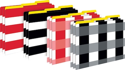 Barker Creek Buffalo Plaid & Wide Stripes File Folders, 1/3-Cut Tab, Letter Size, Assorted Colors, 12/Pack (BC1341)