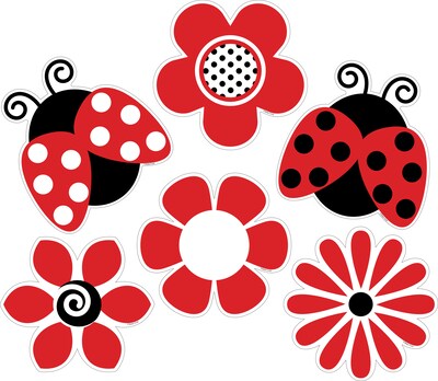 Barker Creek's Ladybugs & Posies Double-Sided Accents will make your decorating dreams come true! These accents are double-sided to give you twice the decorating punch in a single package. Accents are a fun, inexpensive way to dress up your bulletin boards, decorate your children's rooms, and brighten up your work space. There is room to write on some of our accents – add student names, label learning centers, glue them to the front of file folders and label the contents, use them as gift tags. They can also be used to make great little signs, name tags, storage tub labels, invitations, fun flash cards, and so much more! Use them to decorate windows, posters, and packages and you can hang them to create fun mobiles. This set includes 72 double-sided accents -- 12 each of 6 different designs. Each Accent Measures Approx. 5.5" wide by 5.5" high. Coordinating products available: Search Barker Creek Dots.