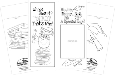 Barker Creek Celebrate Promotion/Graduation Bookmark Set features two bookmarks — Who’s Smart? YOU! That’s Who! and Hip, Hip Hooray! It’s a Special Day! Celebrate seasons, holidays, and special events with their darling new Bookmark Duets! Each set includes 60 bookmarks – 30 each of two designs. Printed on durable card stock, they are printed on both sides and are designed to be decorated. So break out the colored pencils, crayons, glitter and glue! Your children will love creating their own mini-masterpieces! Punch a hole in the top and attach a tassel or a yarn loop. The possibilities are limited only by your imagination! Coordinating products available: Search Barker Creek Celebrate.