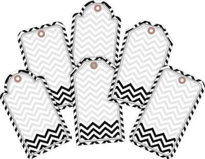 Barker Creek's Black Tie Affair Chevron Double-sided Accent 2-Pack are as stylish as can be! This set includes 2 packages of Black Tie Affair Chevron double-sided accents that are designed to coordinate with our top-selling Chevron curated collection. This set includes 72 accents -- 12 each of 6 different designs and these accents are extra special because they are printed on both sides! Accents are a fun, inexpensive way to dress up your bulletin boards, decorate your children’s rooms, and brighten up your work space. There is room to write on our accents - add student names, label learning centers, glue them to the front of file folders and label the contents, or use them as gift tags. They can also be used to make great little signs, storage tub labels, invitations, fun flash cards, and so much more! Use them to decorate windows, posters, and packages and you can hang them to create fun mobiles. Coordinating product available: Search Barker Creek Chevron.