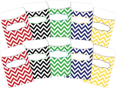 Barker Creek's Chevron Nautical Peel & Stick Library Pockets are versatile little work horses. Library Pockets are great for organizing flash cards, hall passes, file folder game pieces, spelling word lists, library cards, reading logs, and more! How you choose to use them is limited only by your imagination! The package includes 60 peel & stick pockets - twelve each of five colorful designs. Each pocket measures 3 1/2" x 5 1/8" and is sized to hold standard 3" x 5" index cards. These library pockets have two peel & stick strips on the back so you can easily adhere them to the inside of your books. But don't stop there! They will also stick to charts, file folders, storage cubbies, and more. Pockets in the set have a pre-printed label on the front so you can personalize them with staff or student names, presentation dates, list their contents or note other helpful information. Coordinating products are available. Search Barker Creek Chevron.