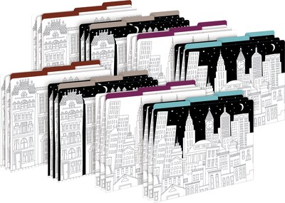 Barker Creek Color Me! Cityscapes File Folder, 1/3-Cut Tab, Letter Size, Assorted Colors, 24/Set (4380)