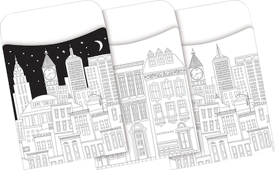 Barker Creek's Color Me! Cityscapes Library Pockets are versatile and fun! Library Pockets are great for organizing flash cards, hall passes, file folder game pieces, spelling word lists, library cards, reading logs, and more! This package includes 30 pockets - ten each of three colorful beautiful designs. They also serve as 30 amazing coloring pages so grab your favorite pack of crayons or color pencils and get coloring! Then you've got your own personalized set of library pockets! Each pocket is 3 1/2" x 5 1/8". Please note you will need to use your own double-sided tape or glue if you want to adhere these pockets to another surface. We are not advertising these library pockets as "peel and stick" as the adhesive strips on the backs are no longer sticky.