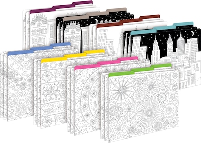 Barker Creek's Color Me! Set of Letter-Sized File Folders is an affordable way to organize your office, classroom, and home with style and flair. This set includes 2 packages of 12 letter size file folders - Color Me! In My Garden and Color Me! Cityscapes. They serve as 24 amazing coloring pages so grab your favorite pack of crayons or color pencils and get coloring! Then use your masterpiece to help you organize! This set of stylish set of desk accessories includes 24 file folders - three each of eight designs. The folders are 1/3 tabbed, which means that they have three tab positions - eight folders are tabbed on the left, eight folders are tabbed in the center, and eight are tabbed on the right. They are great for everyday filing needs, presenting meeting handouts, organizing important papers, sending work home with students, storing treasured photos and archiving other significant mementos. Fully reversible, each folder has a design on one side to be colored in and a vibrant, solid color on the reverse side – perfect for making file folder games and lap books. The possibilities are limited only by your imagination! Coordinating products are available. Search: Barker Creek Color Me!