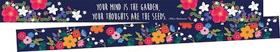 Barker Creek's Petals Double-sided border has coordinating designs on both sides! One side has beautiful flowers in various colors and types on a gorgeous navy blue background. The flip side features the quote "Your mind is the garden, your thoughts are the seeds." by William Wordsworth along with more stunning flowers. Each package includes 24 strips of trim measuring 35" long 3" wide -- that's 70 feet of WOW per package! They are perfect for adding a stylish and fun touch to your classroom! These durable, bright borders are printed on thick, coated paper. Use these beautiful double-sided borders from Barker Creek as bulletin board borders, frame doorways, define learning centers, and decorate your classroom windows. Jazz up your office, decorate breakrooms and create welcoming reception areas. Coordinating products available: Search Barker Creek Petals & Prickles.