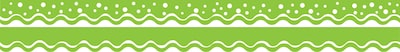 Barker Creek's Double-Sided Happy Lime Border features a sporty scalloped edge. Raising the bar on the competition, Barker Creek’s trim is also double-sided with coordinating designs printed on both sides! That gives you twice as many decorating opportunities in a single package. Each package includes thirteen 36” long x 2 1/4” wide strips of trim for a total of 39 FEET of trim per package! Side one features a fun lime green & white dot pattern with a wavy white rule along the scalloped edge. Side two features a coordinating pattern with just the wavy rule. Mix and match to your hearts content! They are perfect for adding a stylish and fun touch to your classroom! These durable, bright borders are printed on thick, coated paper. Use these beautiful double-sided borders as bulletin board borders, frame doorways, define learning centers, and decorate your classroom windows. Jazz up your office, decorate breakrooms and create welcoming reception areas. Coordinating product available: Search Barker Creek Happy and Barker Creek Dot to Dot.