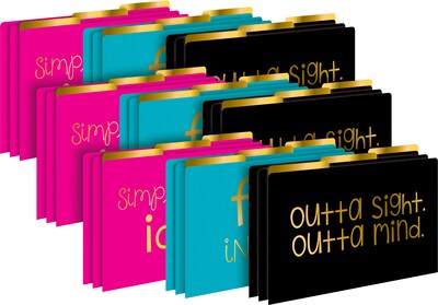 Barker Creek's File in Style legal-sized fashion file folders are raising the style bar for those of us who use legal folders at work, school, and home. Each set includes 27 beautifully designed legal-sized file folders – nine folders each of three on-trend designs with gold foil detailing. The folders are 1/3 cut and printed on durable 12 pt. stock. Fully reversible, each folder has a colorful design on one side and a vibrant, solid color on the reverse side - perfect for color-coding your files, making file folder games and lap books. The possibilities are limited only by your imagination! See all of Barker Creek's file folders!
