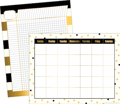 Barker Creek's Gold Calendar & Incentive Chart Set will help you stay on task. The set includes a stylish calendar chart for tracking your monthly activities and a coordinating incentive chart for managing special projects, chores, assignments, "to-do" lists, deadlines, reading lists, goals, and so much more. Reproducible activities are included on the back of each 17" x 22" chart for added value. Buy several to keep your year moving smoothly or laminate them for repeat use with a dry erase marker. Either way, here an affordable way to stay organized in style! Coordinating product available: Search Barker Creek Gold.