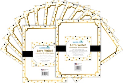 Barker Creek Gold Computer Paper contains 100 sheets of 8 ½” x 11” paper. You can use this colorful paper to add memorable touches to letters and to create custom awards and certificates.