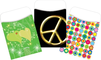 You'll find dozens of creative uses for these versatile library pockets from Barker Creek. Barker Creek's Groovy Library Pocket Set is versatile and fun! Library Pockets are great for organizing flash cards, hall passes, file folder game pieces, spelling word lists, library cards, reading logs, and more! Set includes 90 pockets of assorted designs. There are ten each of three designs and thirty of two other designs. Each pocket is 3 1/2" x 5 1/8" and will hold standard 3" x 5" index cards. Please note you will need to use your own double-sided tape or glue if you want to adhere these pockets to another surface. We are not advertising these library pockets as "peel and stick" as the adhesive strips on the backs are no longer sticky.