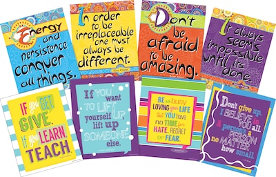- Eye-catching art prints contain motivational quotes that help inspire and stir the imaginations of your students.