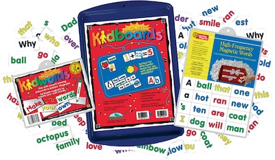 - Set includes 260 magnetic pieces and a 9" x 13" magnetic-receptive blue Kidboard