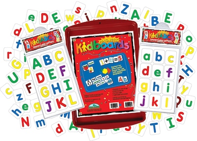 • Set includes 72 magnetic upper- and lowercase letters and a 9" x 13" magnetic-receptive red Kidboard