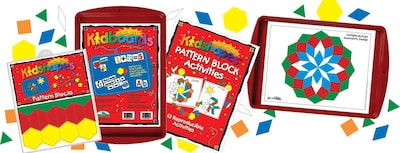 - Set includes 108 magnetic pattern block pieces, 12 reproducible pattern block activity sheets, and a 9" x 13" magnetic-receptive red Kidboard