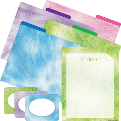 Barker Creek's Lime Tie-dye Get Organized Kit from their beautiful new Tie-Dye & Ombré line will help you stay on task in style! The file folders are printed on sturdy 12 point cardstock, feature 1/3 cut tabs, and are reversible. The self-adhesive labels measure 3.5" x 2.75" and come with 3 each of 15 designs. The coordinating paper is compatible with most laser and inkjet printers. Say goodbye to boring old office supplies and hello to fun and fashion! Coordinating products available: Search Barker Creek Tie-Dye & Ombré.