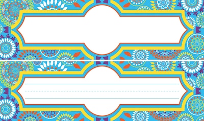 Barker Creek’s double-sided Moroccan Name Plates/Bulletin Board Signs are incredibly versatile! There are 36 name plates that measure 12" long x 3.5" wide. Use the side with rules when making name plates for student desks and lockers, creating word walls, making flashcards for spelling and vocabulary lists, and more. Use the side without the rules for making beautiful bulletin board signs, labeling cubbies, and making hall passes. Because they are double-sided, you can also hang them from the ceiling to identify learning centers, activity zones, library stacks – the possibilities are endless. Coordinating products available: Search Barker Creek Moroccan.