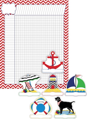 Barker Creek's Nautical Incentive Chart and Accent Set are sure to brighten up your space! This set includes 1 Red Nautical Chevron Incentive Chart and 1 package of 36 nautical chevron double-sided accents that are designed to coordinate with Barker Creek's top-selling Chevron curated collection. The ample space on the incentive chart leaves plenty of room for tracking progress. The coordinating accents are perfect for a bulletin board display, gift tags, invitations, labels, learning centers, and more! Coordinating product available: Search Barker Creek Chevron.