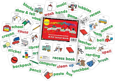- Set includes 45 of the most commonly used words (color-coded to use with Kidwords) and PCS that relate to school and school activities