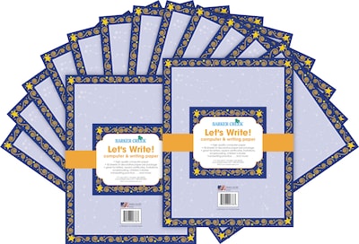 Barker Creek Reach for the Stars Computer Paper contains 100 sheets of 8 ½” x 11” paper. You can use this colorful paper to add memorable touches to letters and to create custom awards and certificates.