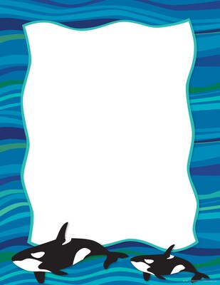 Barker Creek’s Sea & Sky Whales Computer Paper is affordable and beautiful. It features a border of beautiful blues and greens with orca whales at the bottom. Use it to add a memorable touch to letters, design custom awards and certificates, add an extra “wow” to presentations and reports, create gorgeous invitations, make stunning bulletin boards, and so much more! Each package includes 50 8 ½” x 11" sheets of decorative paper which is compatible with most laser printers. Coordinating products available: Search Barker Creek Sea & Sky.