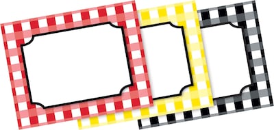 Barker Creek Buffalo Plaid Name tags and self-adhesive labels are perfect for all ages! Package includes 45 multi-purpose self-adhesive name tags — 15 each of 3 designs. The designs feature the classic buffalo plaid design in red, yellow, and black. These name tags are perfect for the first week of school, field trips, assemblies, special visitors, staff meetings and more! They can also be used to personalize file folders, binders, and notebooks. The uses are limited only by your imagination! These name tags measure 2.75" x 3.5". Coordinating products available: Search Barker Creek Buffalo Plaid & Wide Stripes.