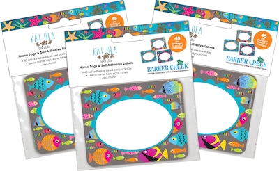 Barker Creek’s Kai Ola Name tags and self-adhesive labels are perfect for all ages! Package includes 135 multi-purpose self-adhesive name tags — 45 each of 3 designs. The bright, colorful designs feature starfish, tropical fish, and sea turtles. These name tags are perfect for the first week of school, field trips, assemblies, special visitors, staff meetings and more! They can also be used to personalize file folders, binders, and notebooks. The uses are limited only by your imagination! These name tags measure 2.75" x 3.5". Coordinating products available: Search Barker Creek Kai Ola.