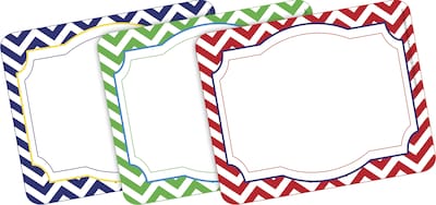 Barker Creek Nautical Chevron Name tags and self-adhesive labels are perfect for all ages! Package includes 45 multi-purpose self-adhesive name tags — 15 each of 3 designs. These name tags feature the classic chevron design in three colors — navy, red, and green. These name tags are perfect for the first week of school, field trips, assemblies, special visitors, staff meetings and more! They can also be used to personalize file folders, binders, and notebooks. The uses are limited only by your imagination! These name tags measure 2.75" x 3.5". Coordinating products available: Search Barker Creek Chevron.