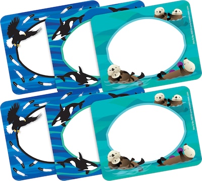 Barker Creek’s Sea & Sky Name tags and self-adhesive labels are perfect for all ages! Package includes 90 multi-purpose self-adhesive name tags — 30 each of 3 designs. The designs feature playful otters, beautiful bald eagles, and magnificent orca whales. These name tags are perfect for the first week of school, field trips, assemblies, special visitors, staff meetings and more! They can also be used to personalize file folders, binders, and notebooks. The uses are limited only by your imagination! These name tags measure 2.75" x 3.5". Coordinating products available: Search Barker Creek Sea & Sky.