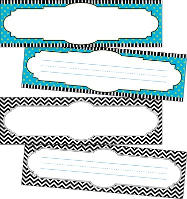 Barker Creek's double-sided Curated Name Plates/Bulletin Board Signs are incredibly versatile! The designs included in this set are Black Chevron and Nature's Colors. This set includes 72 name plates - 36 each of 2 colorful designs that measure 12" long x 3.5" wide. Use the side with rules when making name plates for student desks and lockers, creating word walls, making flashcards for spelling and vocabulary lists and more. Use the side without the rules for making beautiful bulletin board signs, labeling cubbies and making hall passes. Because they are double-sided, you can also hang them from the ceiling to identify learning centers, activity zones, library stacks - the possibilities are endless. Coordinating products available: Search Barker Creek Chevron and Barker Creek Happy.