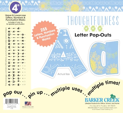 Barker Creek's top-selling Thoughtfulness 4" Letter & Number Pop-Outs will make your posters, signs, bulletin boards, and special projects pop!