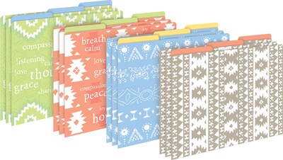 Barker Creek's Thoughtfulness letter-sized file folders are an affordable way to organize your office, classroom, or home with style and flair. The set includes 12 folders -- three each of four beautiful designs. The calm color palette and on-trend designs were inspired by the thoughtfulness, mindfulness, and meditation trends. Coordinating designs are printed on the inside making each folder fully reversible for added value! The tabs are 1/3 cut and the folders are printed on durable 14-point stock. They are great for everyday filing needs, presenting meeting handouts, organizing important papers, sending work home with students, storing treasured photos and archiving other significant mementos. The possibilities are limited only by your imagination! See Barker Creek's full line of fashion-forward file folders!! Coordinating products available: Search Barker Creek Thoughtfulness.