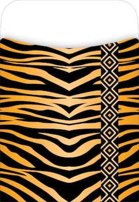 Barker Creek's Tiger Library Pockets are versatile and fun! Library Pockets are great for organizing flash cards, hall passes, file folder game pieces, spelling word lists, library cards, reading logs, and more! The package includes 30 pockets. Each pocket measures 3 1/2" x 5 1/8" and is sized to hold standard 3" x 5" index cards. Please note you will need to use your own double-sided tape or glue if you want to adhere these pockets to another surface. We are not advertising these library pockets as "peel and stick" as the adhesive strips on the backs are no longer sticky.