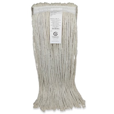 The Baseline White Cotton Mop Head is an economical choice for general floor cleaning. Made from 100% post-industrial reclaimed cotton textile garment waste, this mop head offers maximum absorption and hold, ensuring efficient cleaning. Certified by Green Seal for Environmental Innovation, it contributes to reducing greenhouse gas emissions and water consumption. Designed for use with side gate wet mop handles, this mop head is a sustainable and effective cleaning solution.