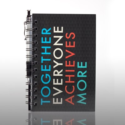 Baudville® Journal and pen gift set had 100 sheets of paper with "T.E.A.M." theme on the hard cover making it unique. Set includes click pen and for company wide message four color art is used to look great.