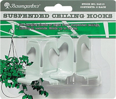 Baumgartens® Suspended Ceiling Hooks, White, Holds 30 Lbs., 2"L, 2/Pk
