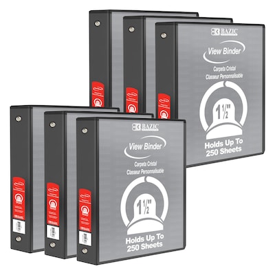 Bazic 1 1/2" 3-Ring View Binders, Black, 6/Pack (BAZ3147-6)