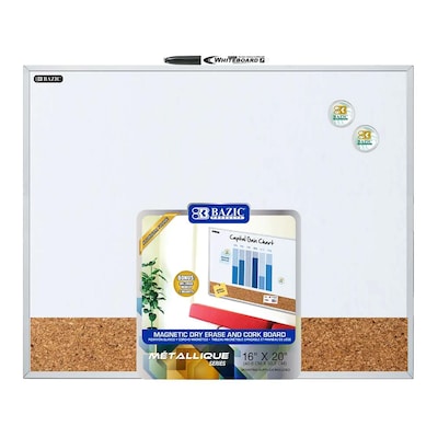 Bazic Magnetic Cork & Dry Erase Whiteboard, Aluminum Frame, 16" x 20" (BAZ6053)