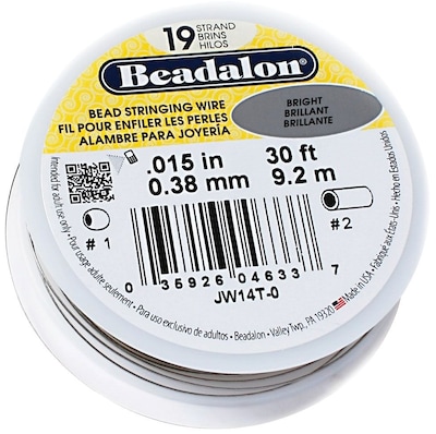 Beadalon 19 Strand Bead Stringing Wire Bright .015 In. (0.38 Mm) 30 Ft. Spool [Pack Of 2]
