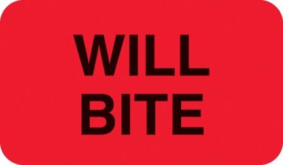 Behavior and Instruction Medical Labels, Will Bite, 7/8x1-1/2", 500 Labels